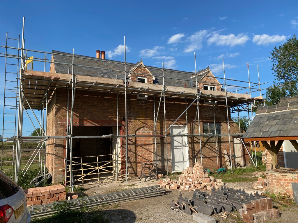 A few pictures of the stable block before and during renovation. The ivy was particularly hard to get off! It had worked its way under the slates and wrapped around the chimney. It took some time but the chimney has been rebuilt new windows, doors and the roof has been repaired and slated. When it is finished, it’ll have moved from a stable block to a utility building for this century.