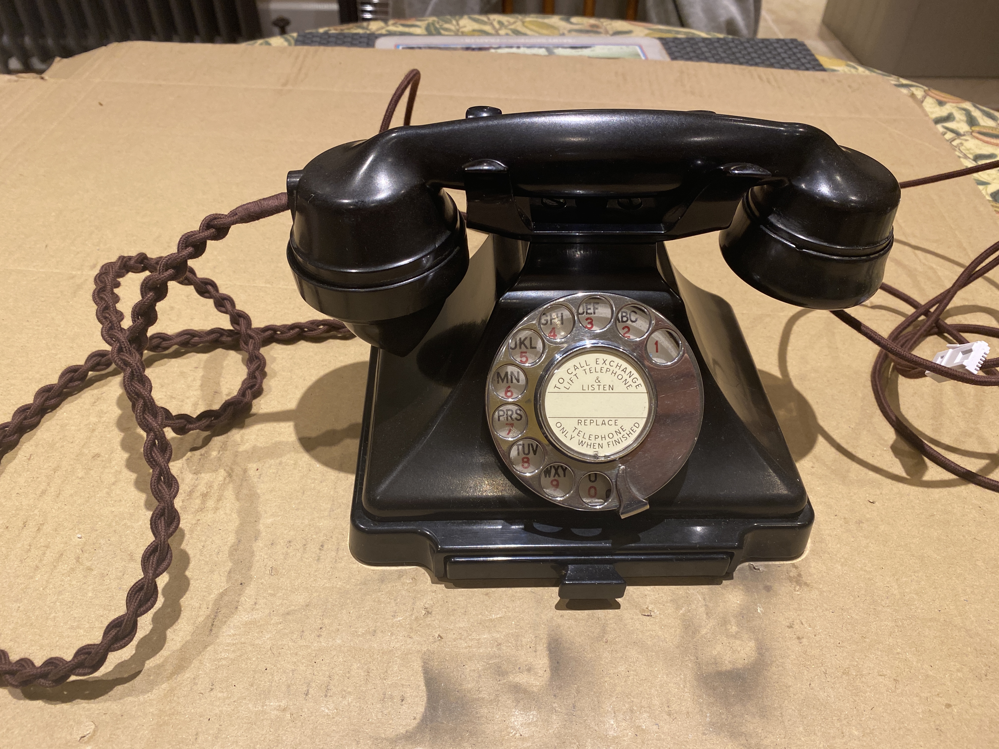 - A new cable with a modern plug adaptor was fitted (three wires in the base of the phone, not too hard), so the phone can be connected to a standard BT socket.