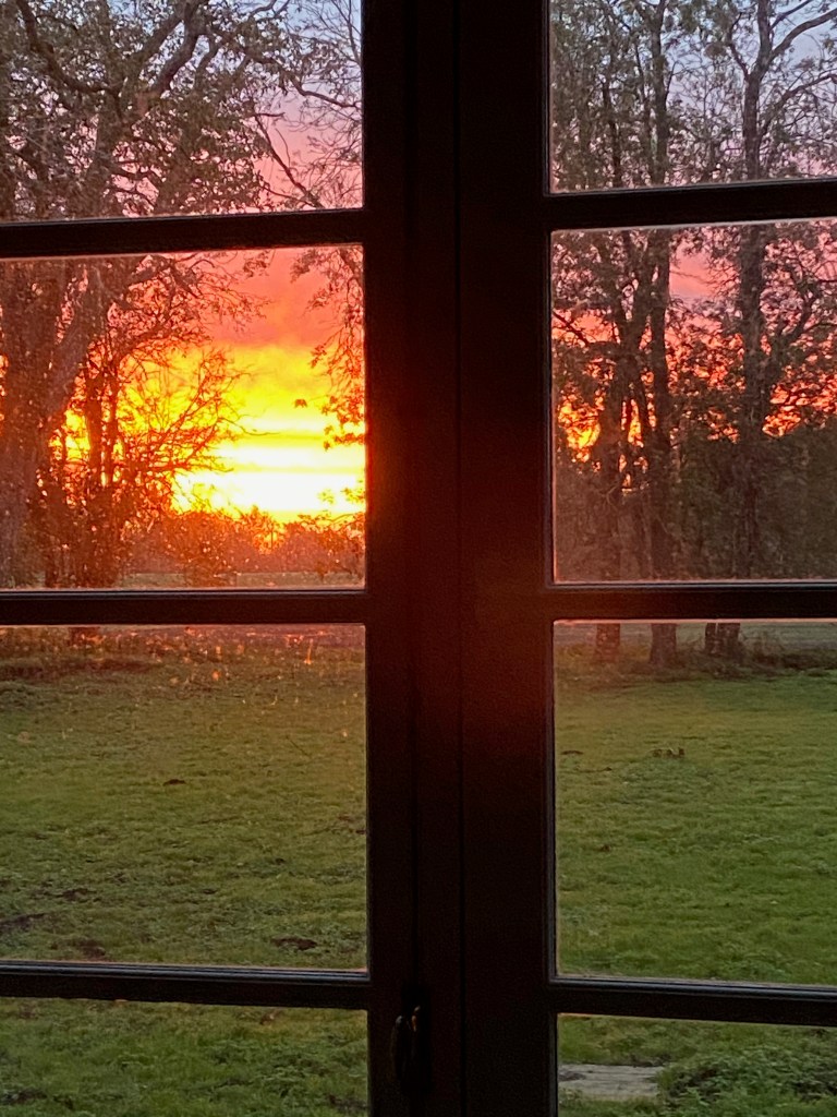 The picture was taken from the morning room, as the winter sun began to rise.