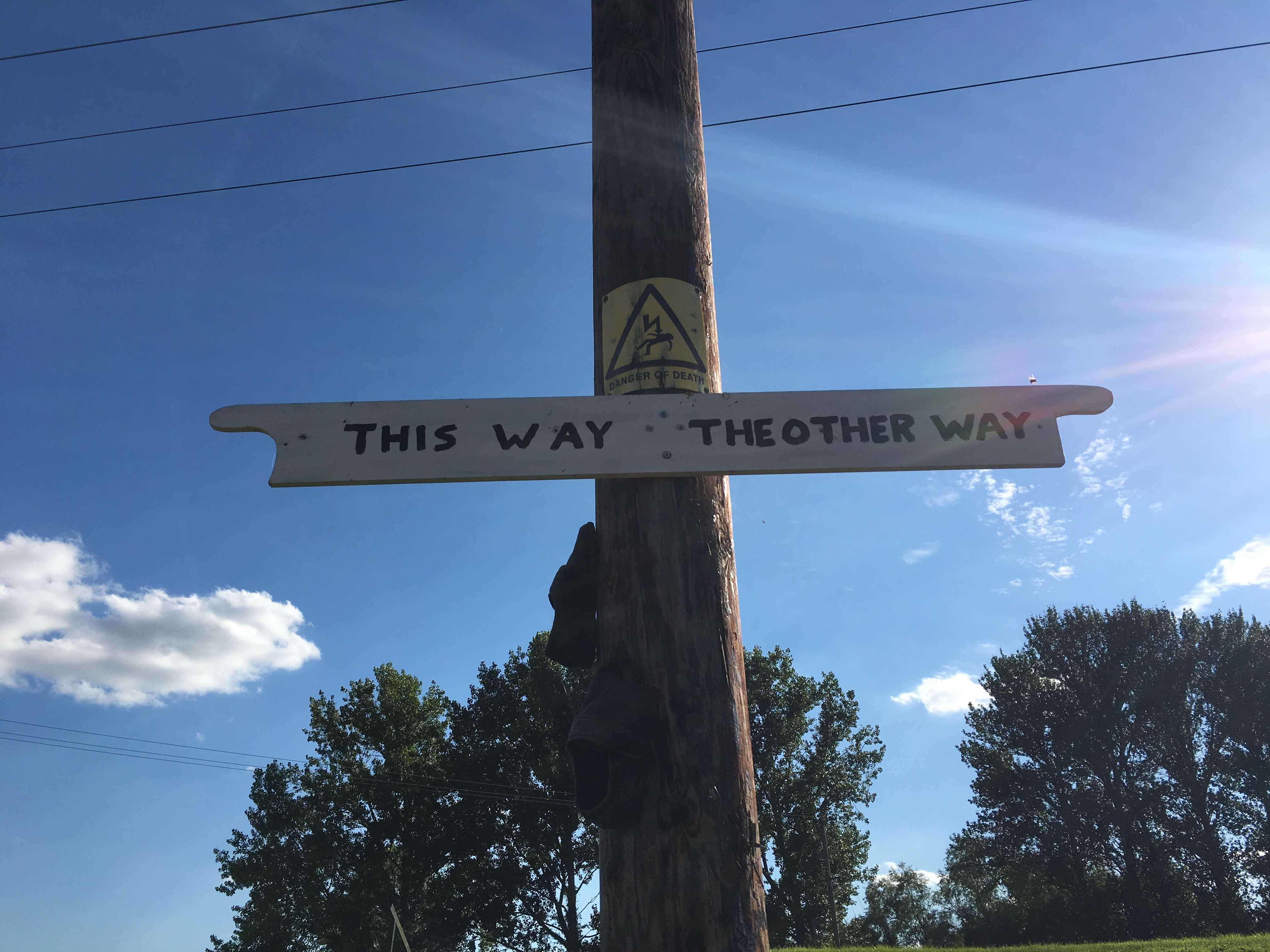 If you cross the bridge from the hamlet of Little Ouse, Cambridgeshire to Brandon Bank, Norfolk, you will find that you have strayed to a place where dragons still lurk. I have no idea why they nail shoes to electric poles. You just don’t like to ask!