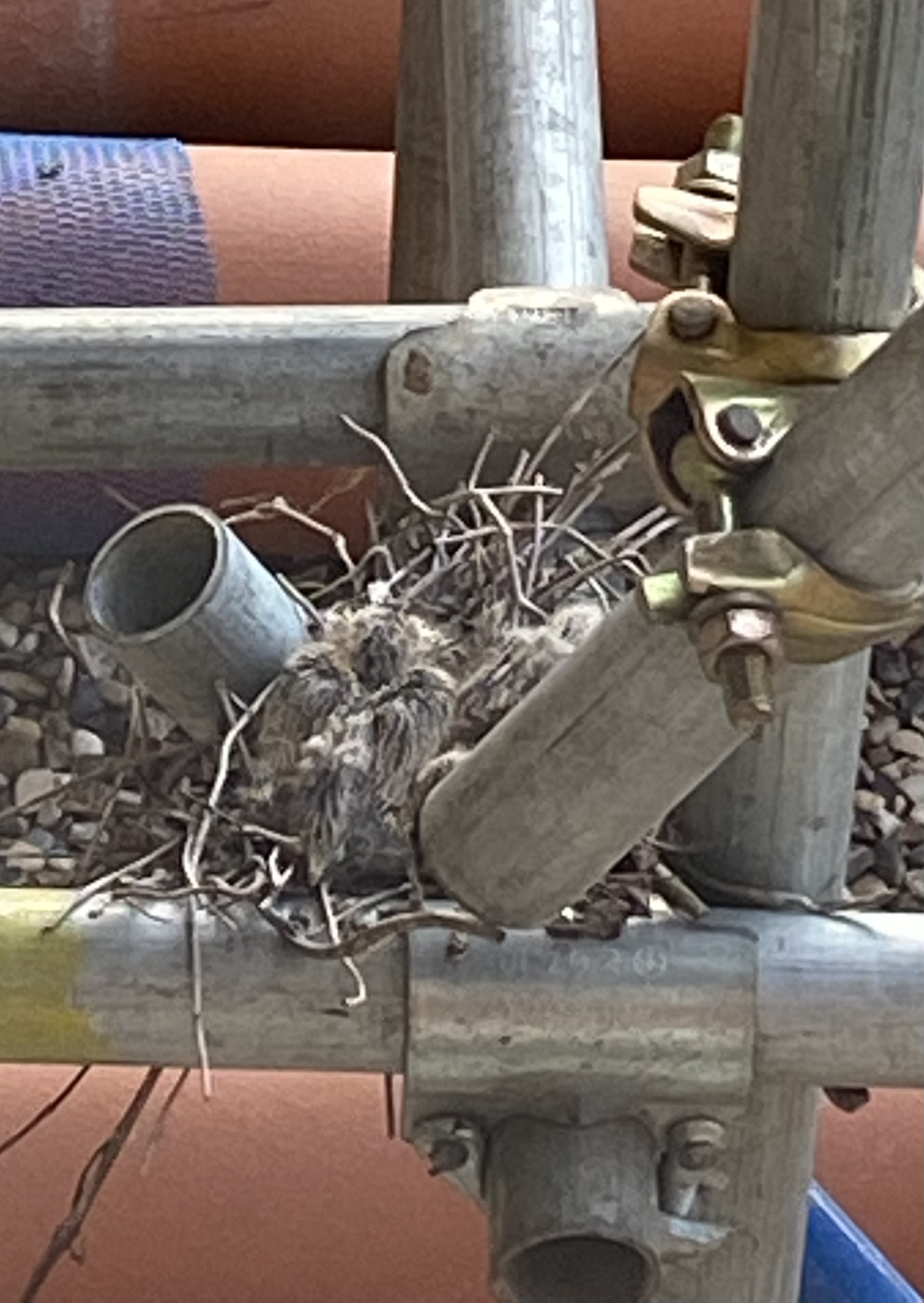 Whilst the roof is being refurbished, a Eurasian Collared Dove has decided to setup home in the scaffold outside the Servants door. This is a good position as the scaffold boards above give shelter from the excesses of the English summer. In addition, the doorway is situated, so that it is never exposed to full sunlight.