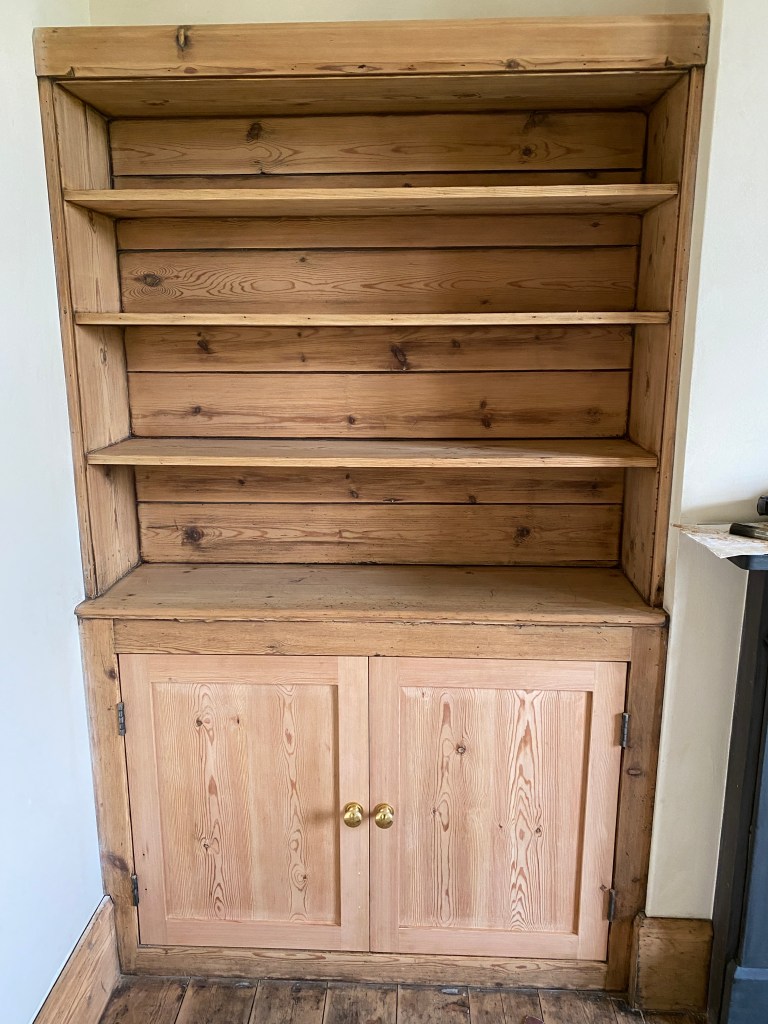 If the unit had been in one of the utility rooms, such as the kitchen or scullery, we would have been tempted to seal the wood with a light stain or wax and retain this stripped look. However, the unit is in a formal room where all of the other wood (internal shutter, doors, skirting etc.) is being taken back to the original colour.