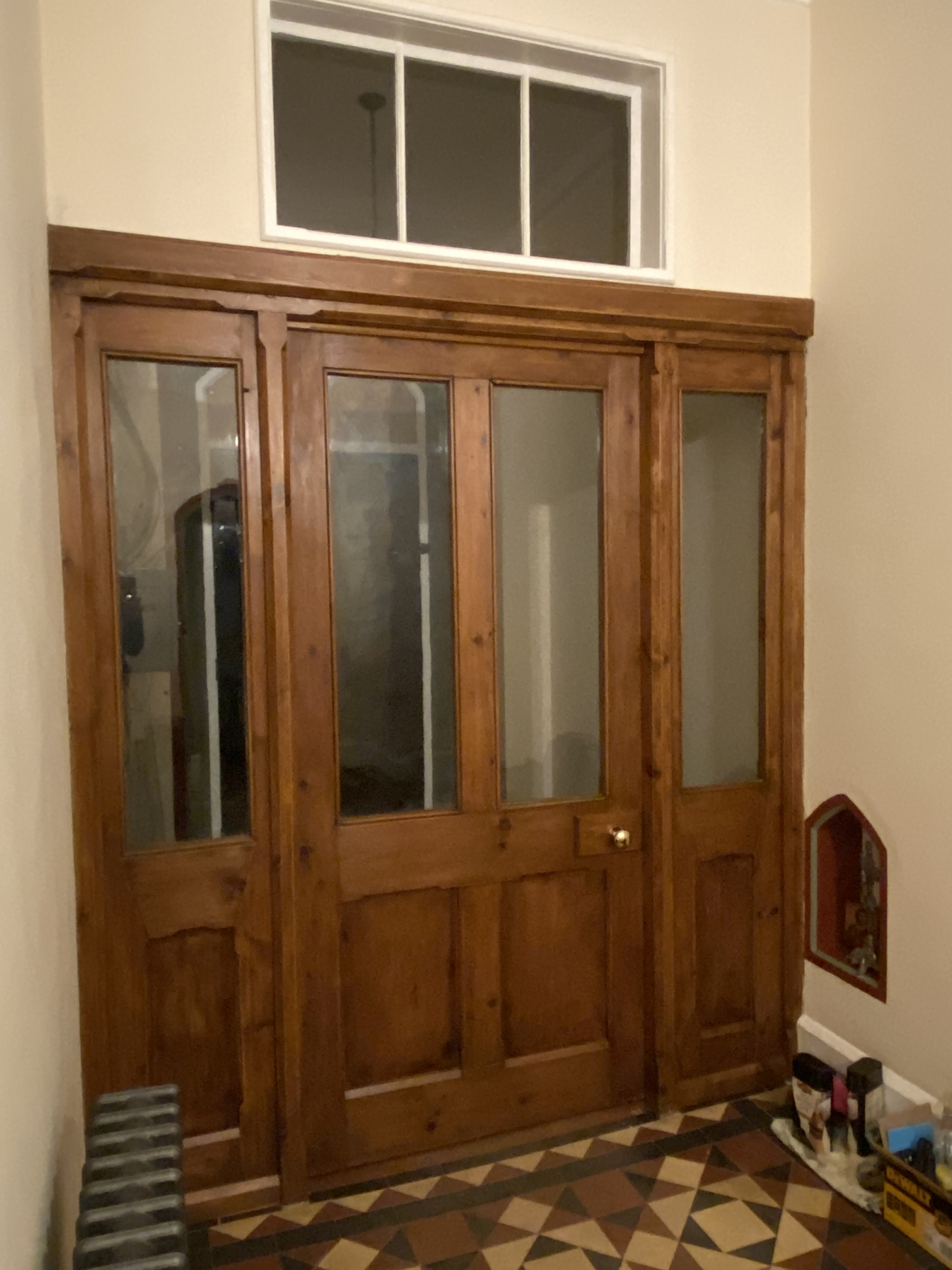The finish is reasonable, not perfect. The wood underneath all the paint had been stained, presumably when new in a mahogany colour. This had penetrated the wood and took some time to lighten, you’ll see a few patches on the panel which would have needed bleaching to bring them back to uniformity.
