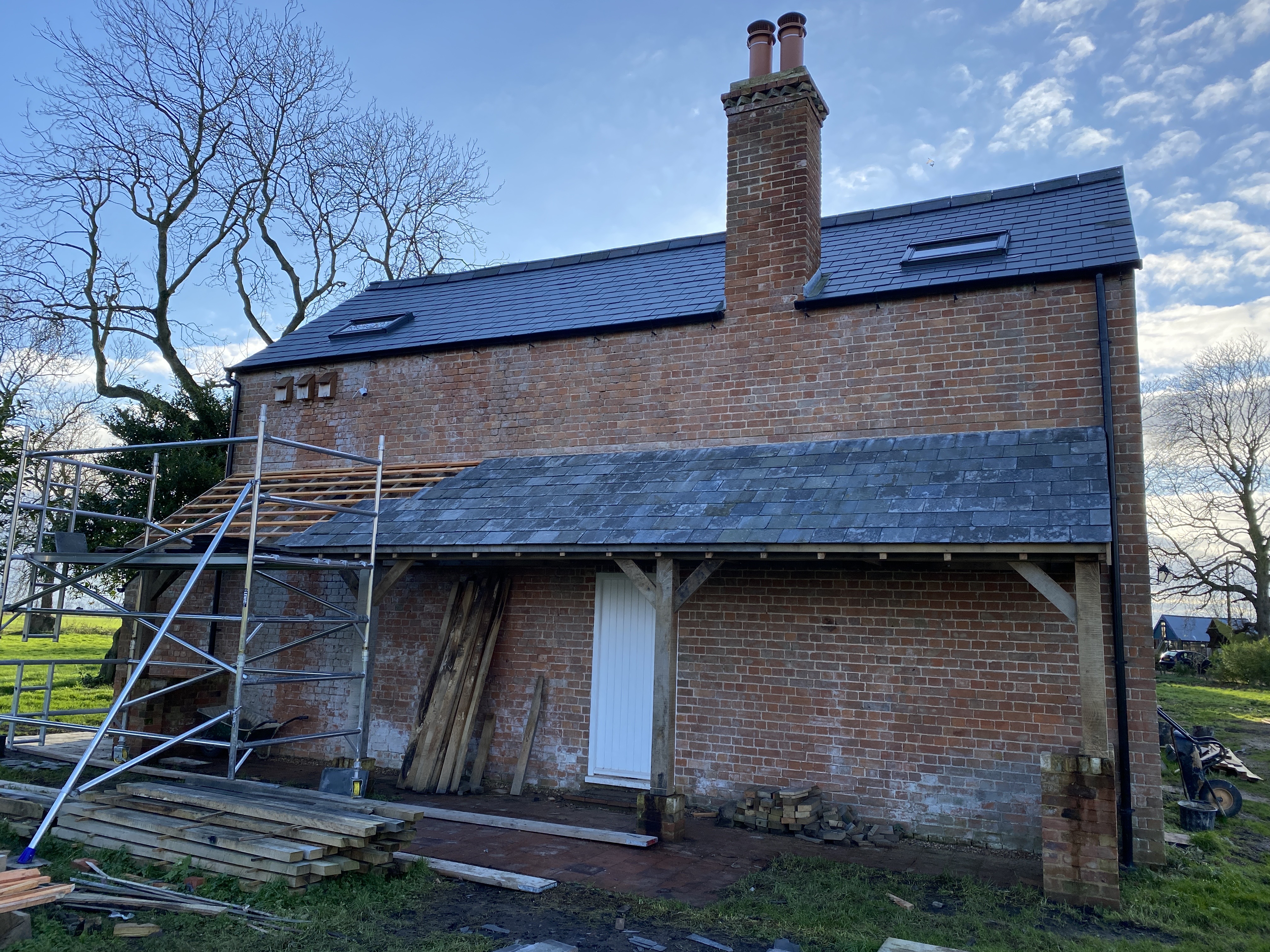 The remaining tasks to do are the lead flashing, the fixing of the slates and then guttering to be added.