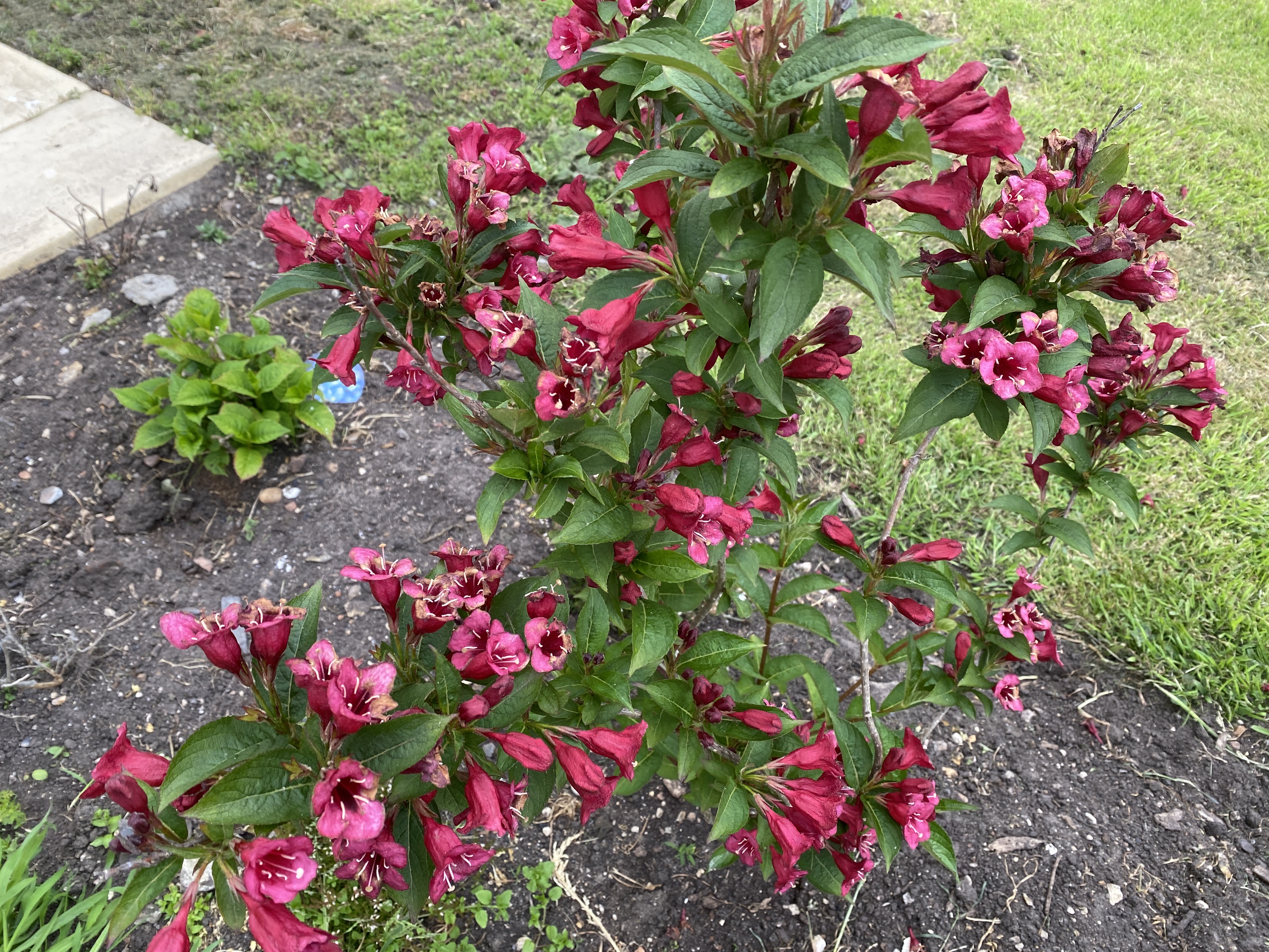 The weigela that was planted late last year in the front garden border is doing well and has a very nice display.