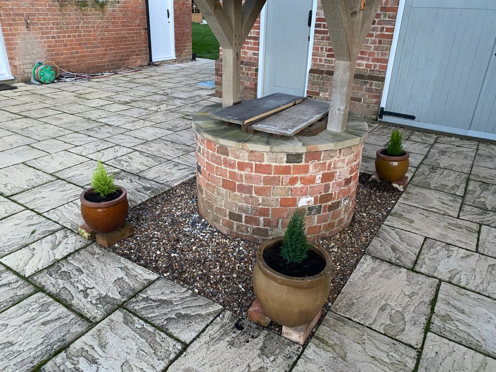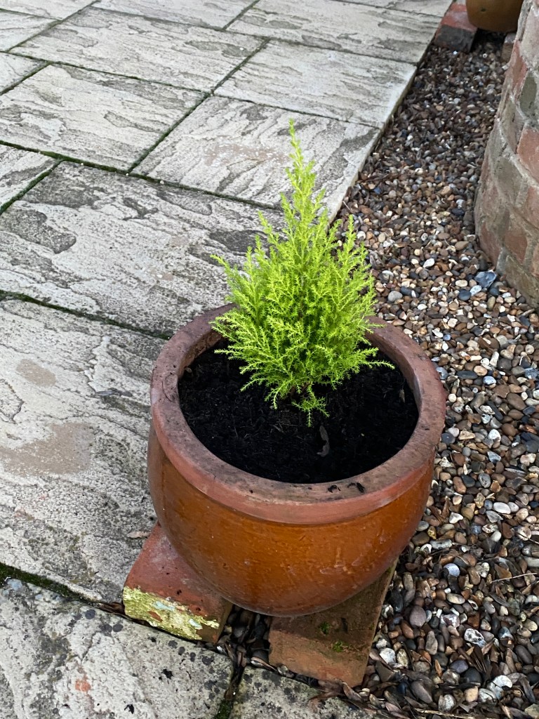 Now all the geraniums have been lifted for the winter and most of the spring planting has been done. These four pots were left with nothing in them. A few small conifers will stop them. from looking neglected over the next few months.