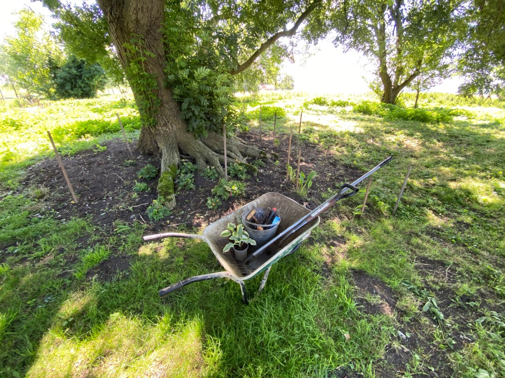 At the back of The old Vicarage, if you go across the lawn and follow the paths through the wildflower area you you will come across the old mountain ash tree. From the front it looks fine, but walk around the back and you will see that the tree is hollow and the rabbits have created a warren underneath. It is very much like Alice in Wonderland. To this end, last year I started to plant up the area around it with ferns, primroses, hostess, canna, winter flowering jasmine and several other plants that the rabbits seem to leave alone.