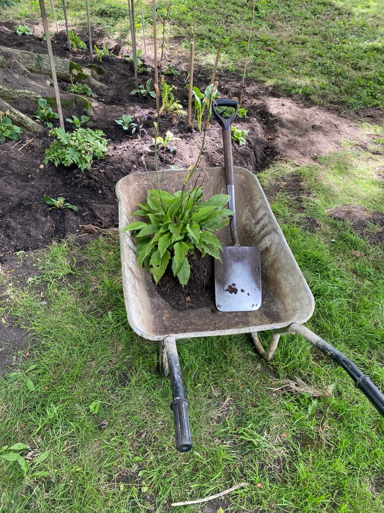 Not being in this area of the garden for several months, the nettles and weeds had started to gain control again. It didn’t take long to strip then back and underneath the primroses and hostas have all started to grow very well. Which has allowed me to start to split them.
