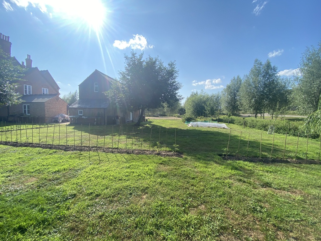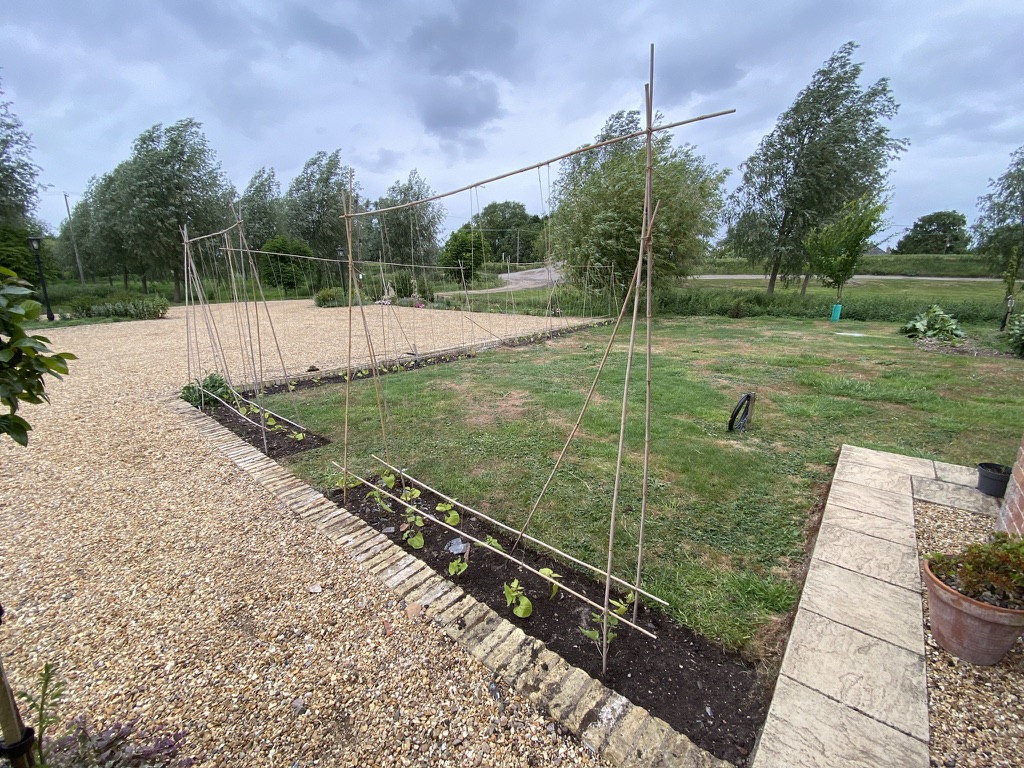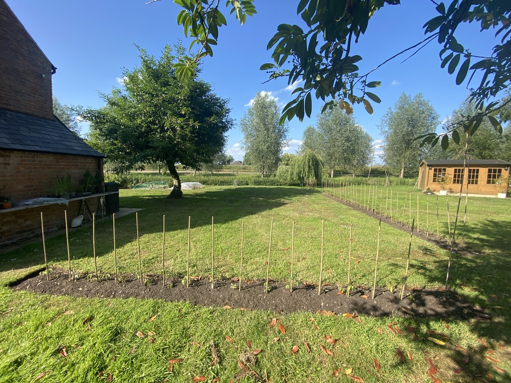 As we do not have a horse and have converted the Old Stable Block into Orchard Cottage, it seemed good to redesignate each area and set the new boundaries. It is far too late in the year to plant hedging with the summer upon us, so instead, have initially planted a seasonal crop.