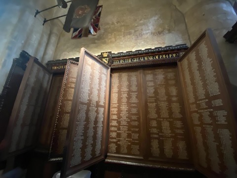 The chapel has these all the names listed from its diocesan area and these cupboards go all round the chapel. The doors are also engraved on the front and back with names. Which puts into perspective how many fell. Some towns, you wonder if there were any young men left.