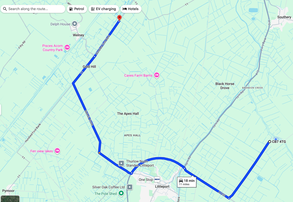 The Welney Wetland Centre is only eighteen minutes by car.