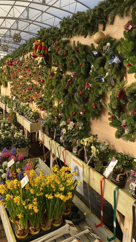 Simpson’s now have their Christmas wreaths in. I have bough exactly the same style for the front door as last year. I also found a reasonable one in Aldi and some additional small potted Christmas trees in Sainsbury’s to go on the Breakfast room patio.