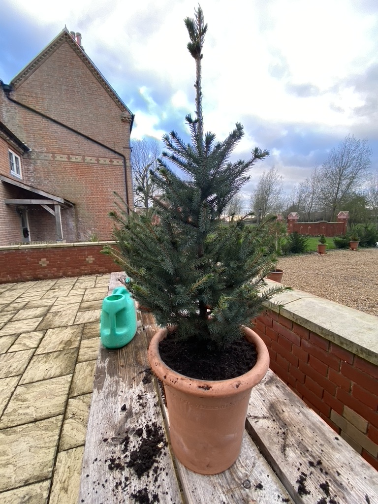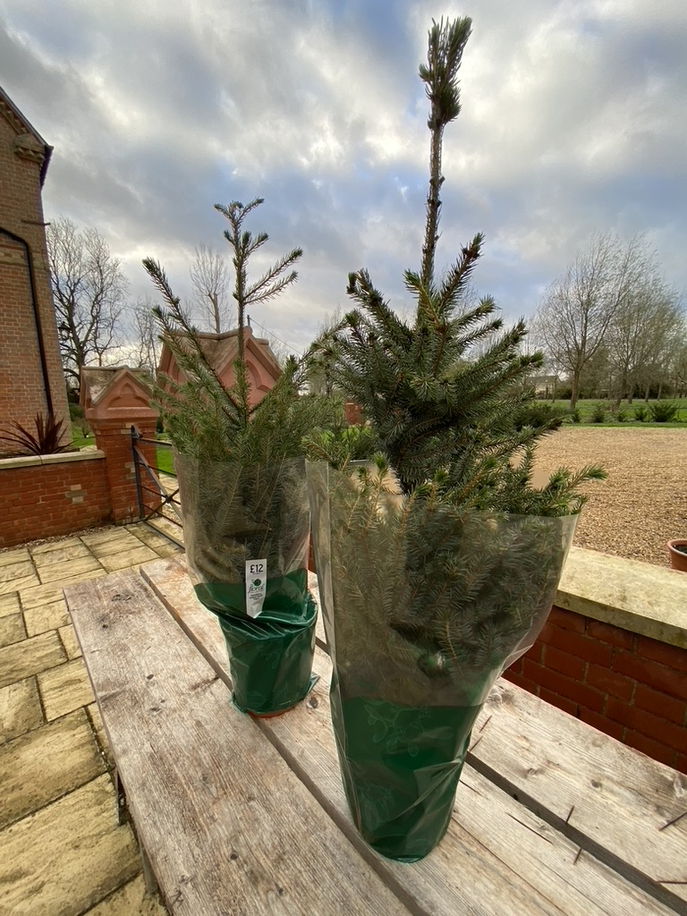 I got the last two Christmas trees from Sainsbury’s, £12 each. Though they are potted up from field grown, they seem to have a reasonable root mass for the size.