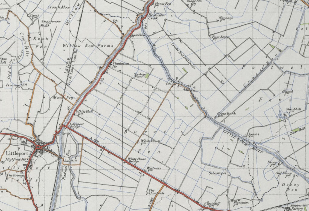 - The greater part of the parish is fen land, and north and east from the village stretches an expanse that is one of the loneliest pieces of country within a hundred miles of London. It includes Burnt Fen (said to be so called from having been burnt by Hereward the Wake) on the Cambridgeshire, and Feltwell Fens on the Norfolk side of the Little Ouse. There are no made roads between the one from Littleport to Shippea Hill and Mildenhall and the one from Southery to Feltwell nearly 6 miles away north-east, except the by-road to the remote village of Little Ouse on the county boundary. Much of this potentially fertile land lay derelict from lack of drainage and sheer inaccessibility until the Second World War. ‘A desolate country except in harvest time under blazing sun, and quite without interest except to the farmer who gets his living there.