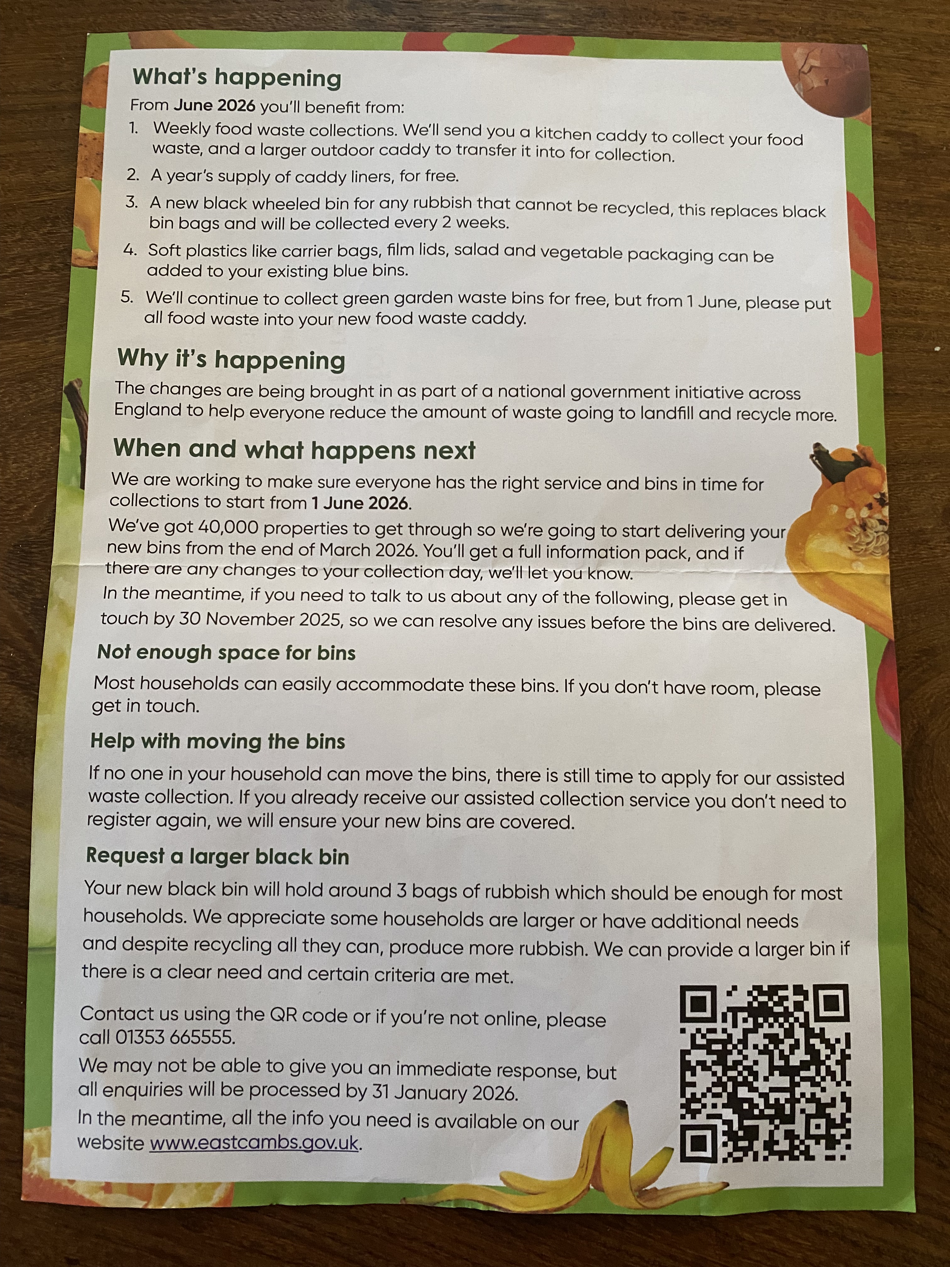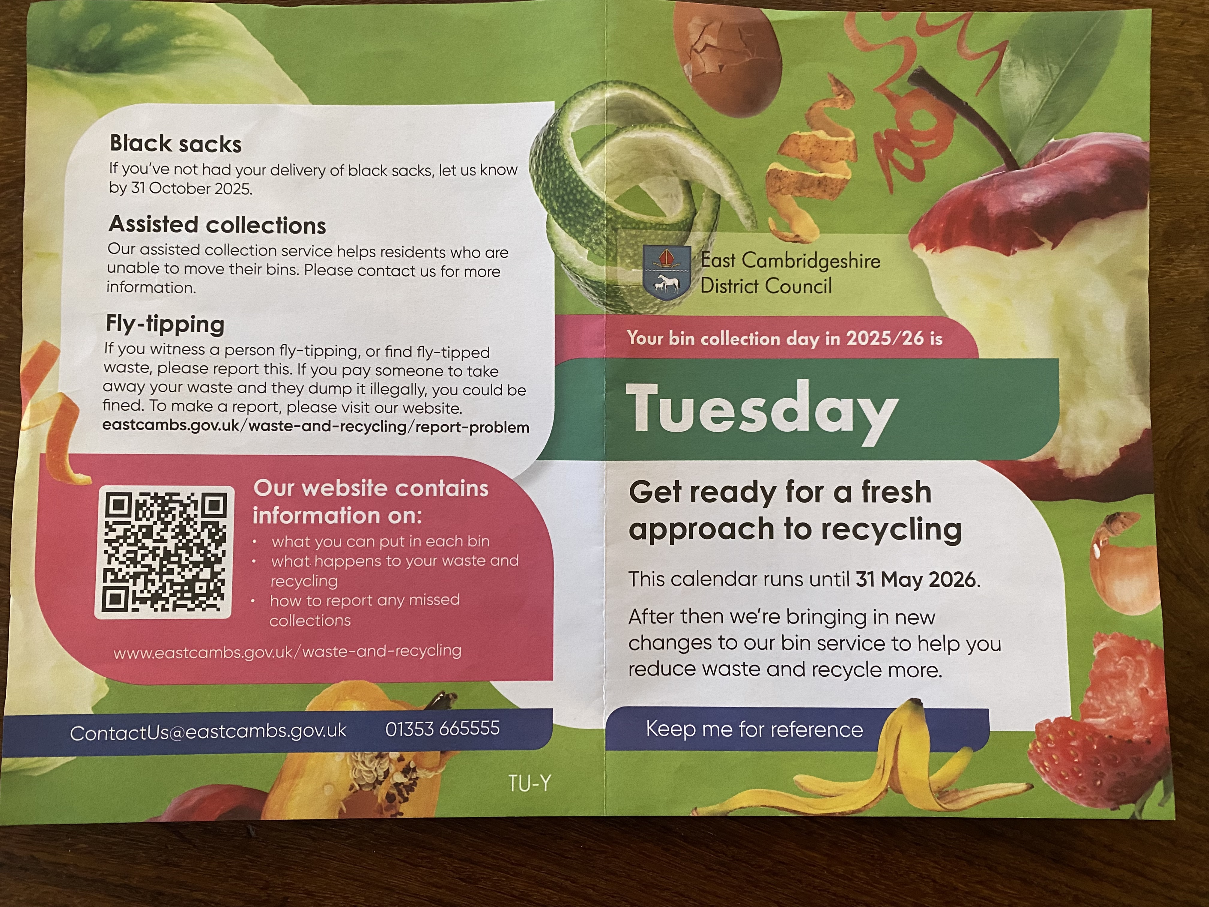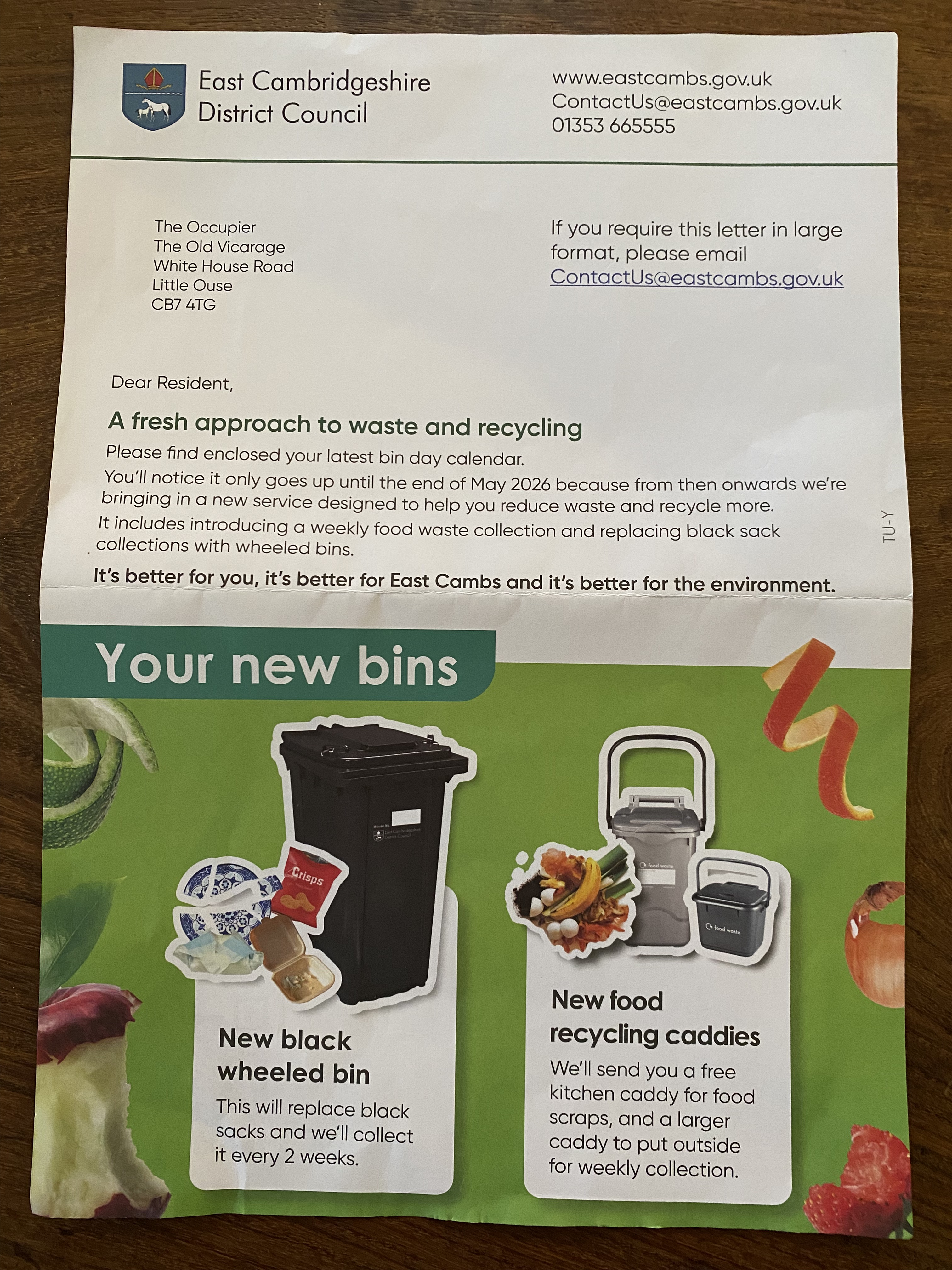 - 1st, Monday – From March until the end of May, East Cambridgeshire Council will be delivering a black wheelie bin to each household. Moving from the current black sack collection. In total this will be 40,000 wheelie bins. The new collection scheme will start the week beginning the 1st of June.