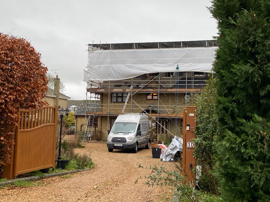 - 1d White House Road – One of the houses built on the grounds of the Old (1927) School is being adapted to its owners requirements. The work started pre Christmas and hopefully, the builders will finish soon. At least the corrugated roof on the scaffolding will keep the worst of the weather out.