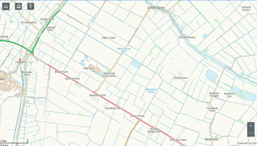 - This also shows the width of the Little Ouse at the end of White House Drove (White House Road). The river has been channelled since 1803, which allowed the hamlets of Little Ouse and Brandon Bank to be built. Which prevents the flooding of the fields shown in the blue.