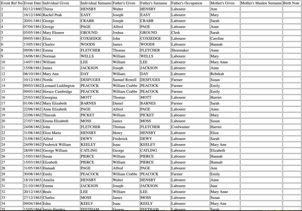 - Sources – Cambridgeshire Baptisms,Cambridgeshire Burials, National Burial Index For England & Wales
