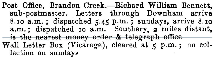 - Also see Kelly’s directory which shows that – “Wall Letter Box (Vicarage), cleared at 5p.m. ; no collections on Sundays.”