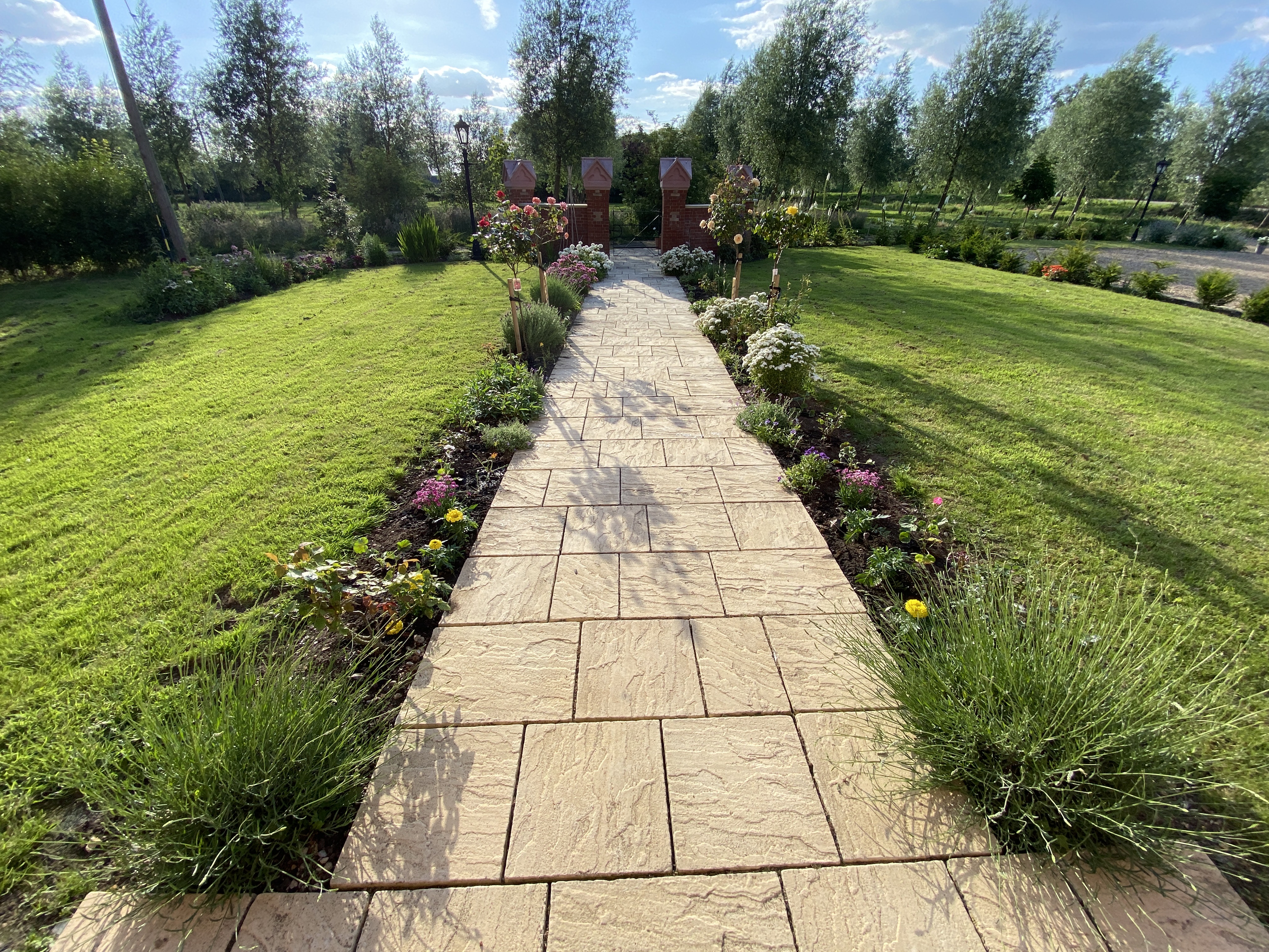 A new sandstone path has been laid to the front door. New electric cables have been dug to the front gate, and a new lampost installed.