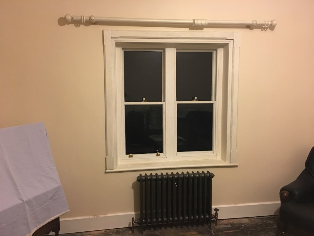 The following pictures show the before and after of the window and also the fixing of the curtain pole. All of the upstairs rooms have the same curtain pole and colour.