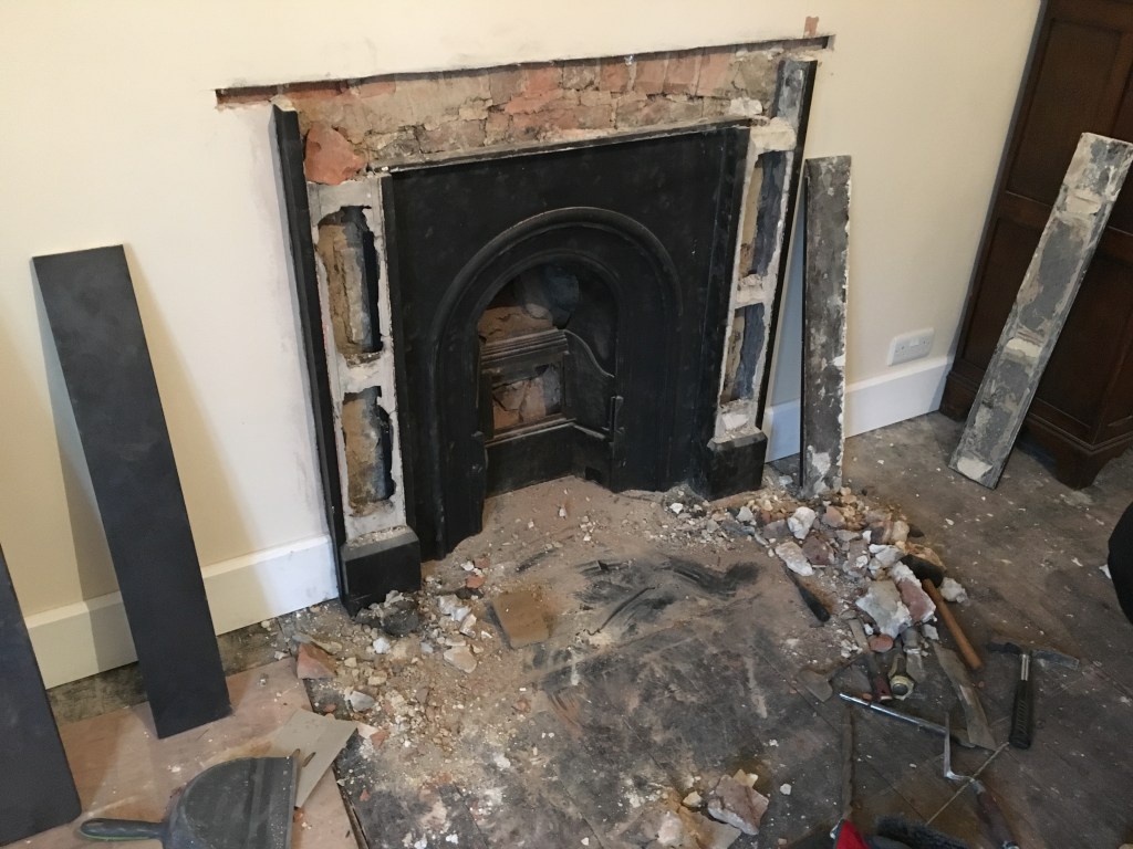 The hardest thing was the iron clips that held the parts of the slate surround together had deteriorated and become brittle. New ones had to be made on the shed to get the fireplace to fit back together.