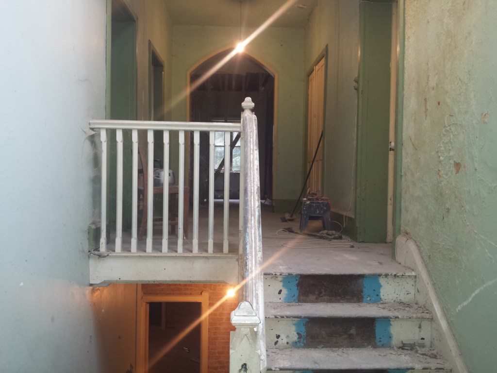 - Stud wall through the arch was taken down to make way for a new door to the upstairs study.