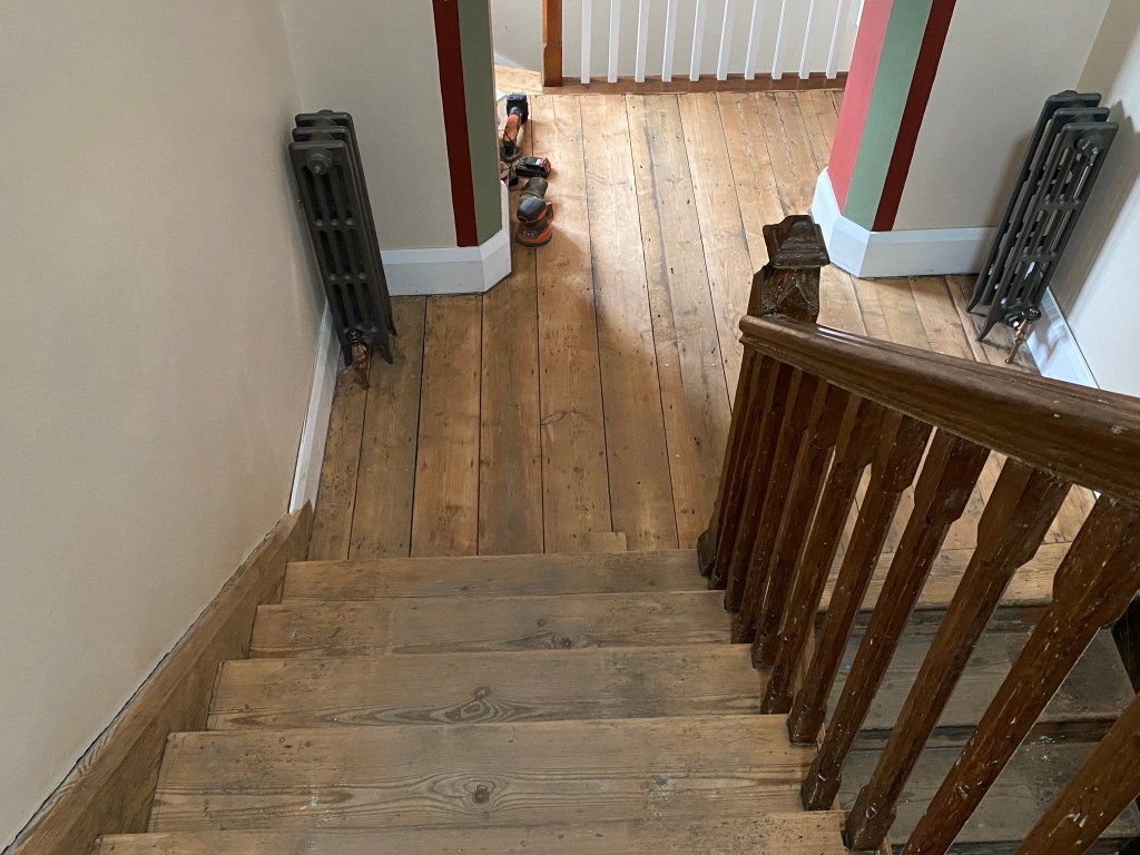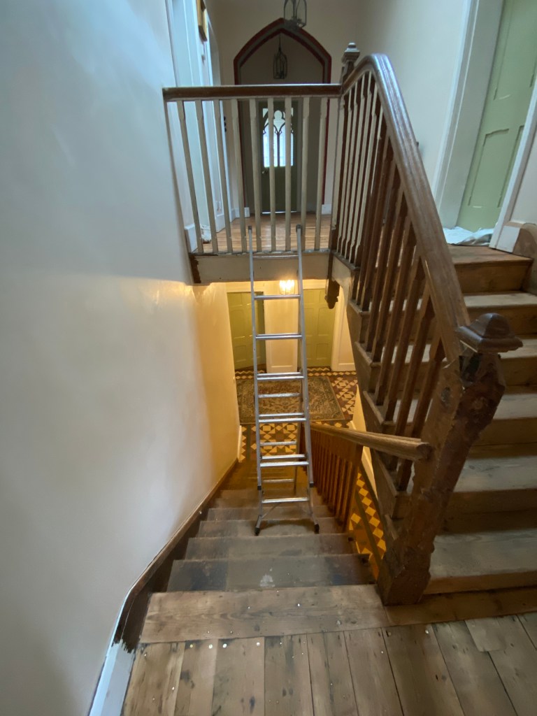 - The banister has has the majority of paint removed, still work in progress.