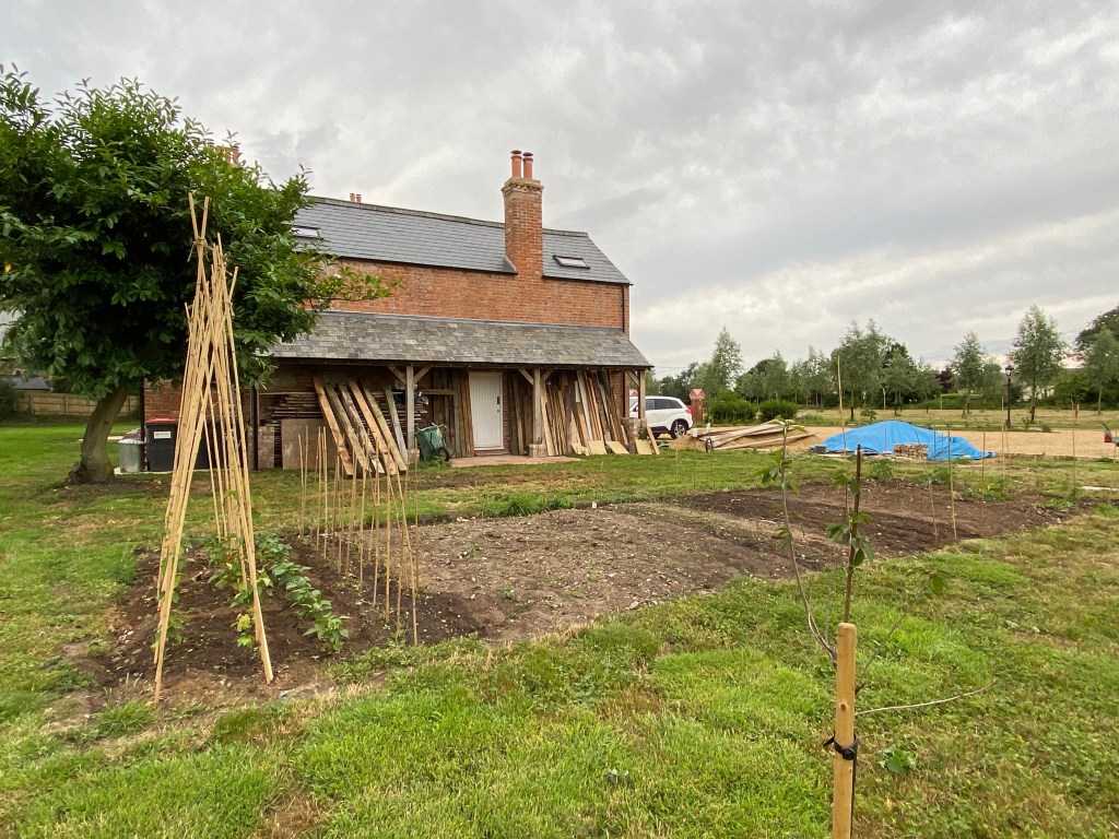 The new log store has been built in oak. The oak was cut from a tree in the garden that had fallen. The vegetable plots are in the process of being dug out.