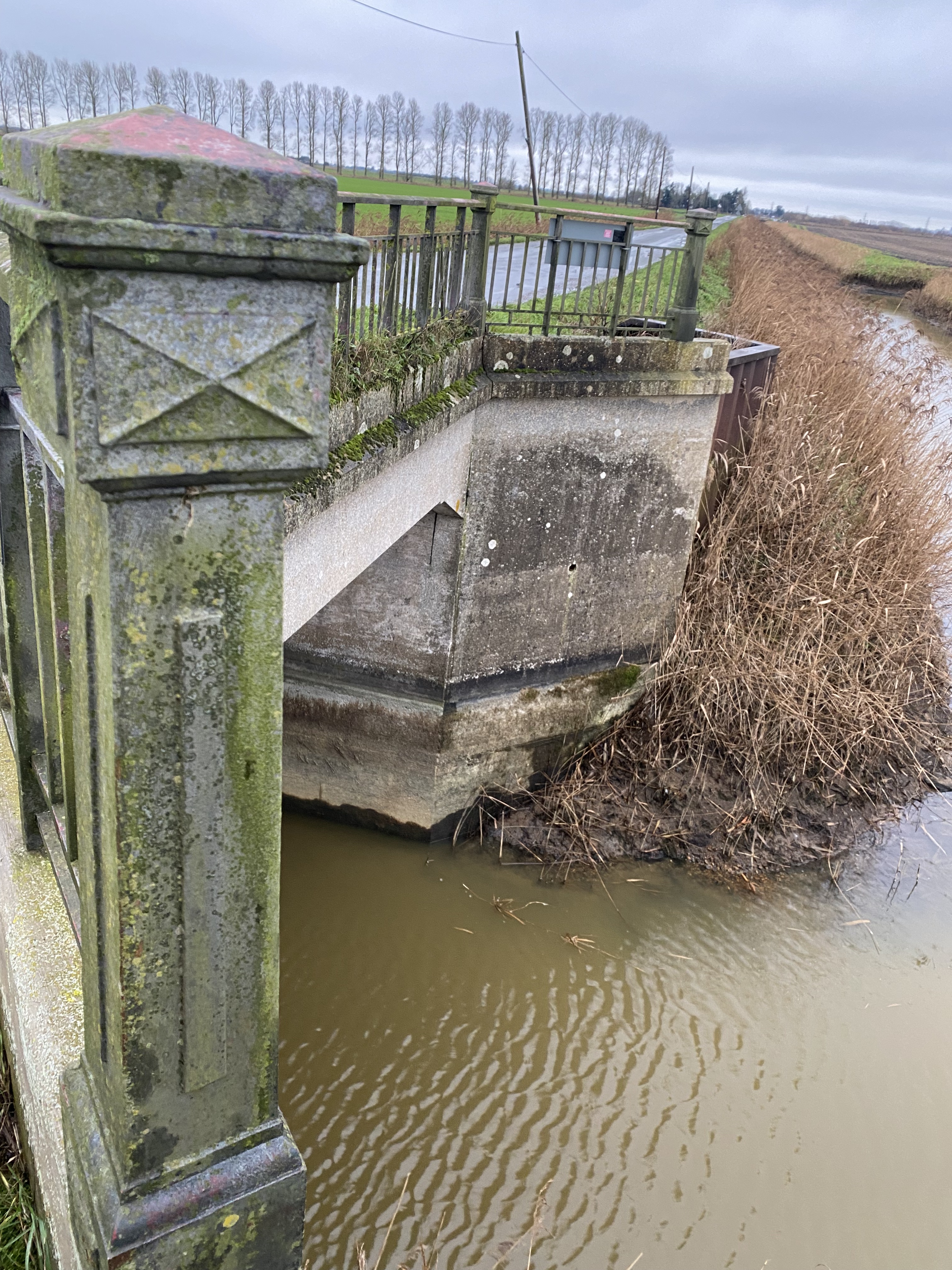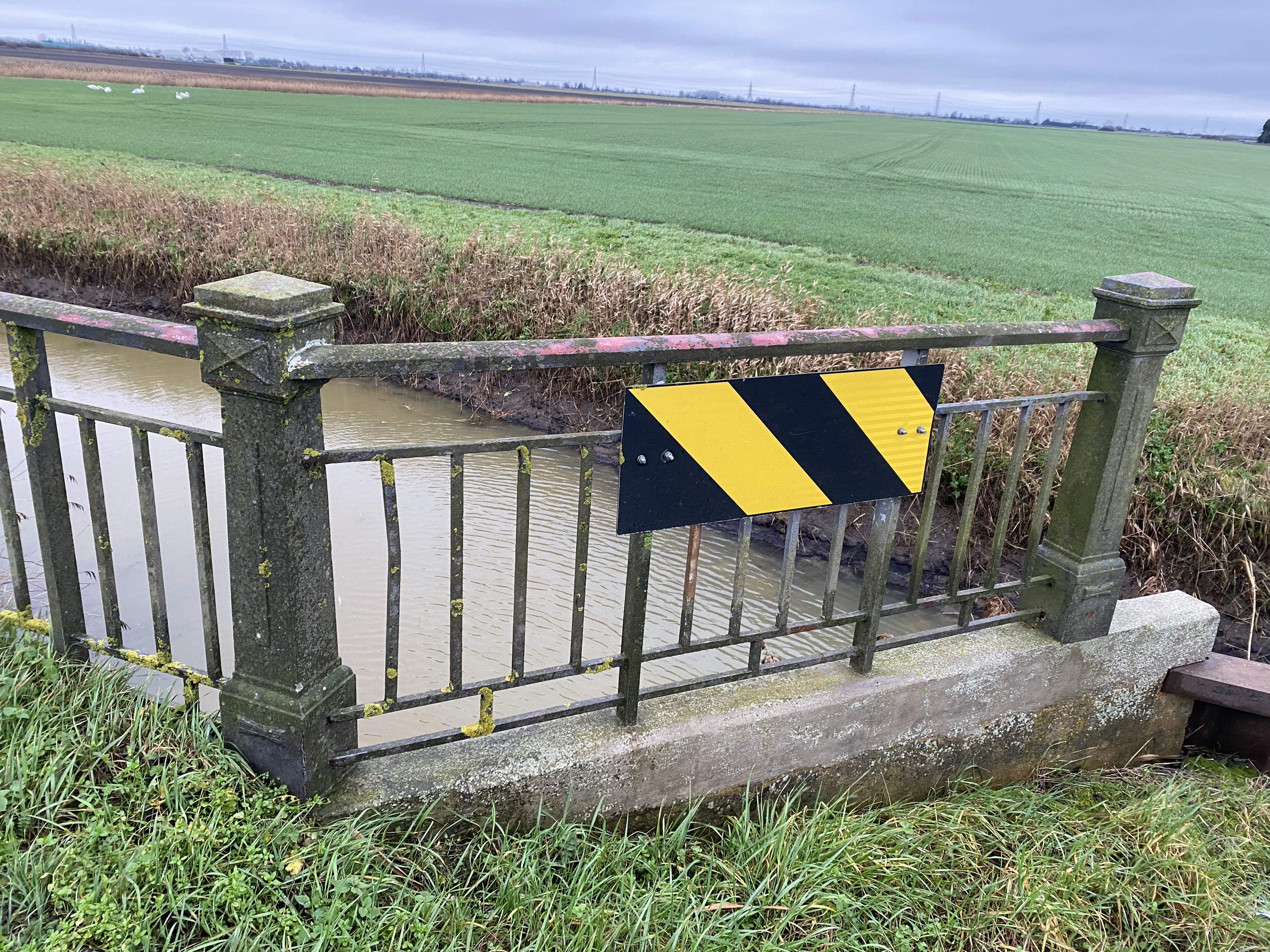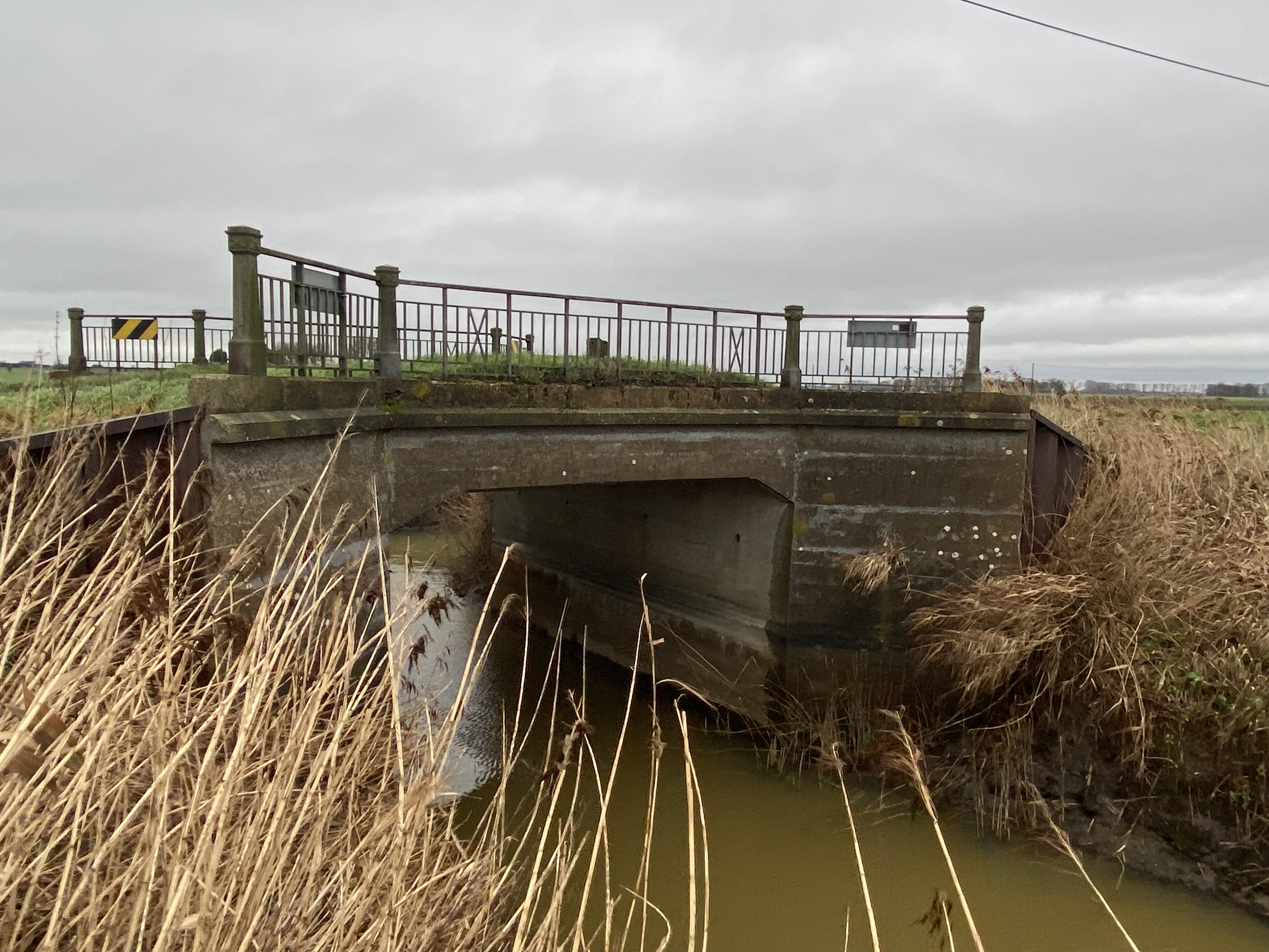 This is the hump backed bridge on White House Road that goes over the Mildenhall Drain, where it intersects with the White House Drain. I don’t believe that it has a name. There are several of these concrete bridges with iron railings crossing drainage ditches in the fens. They are quite substantial.